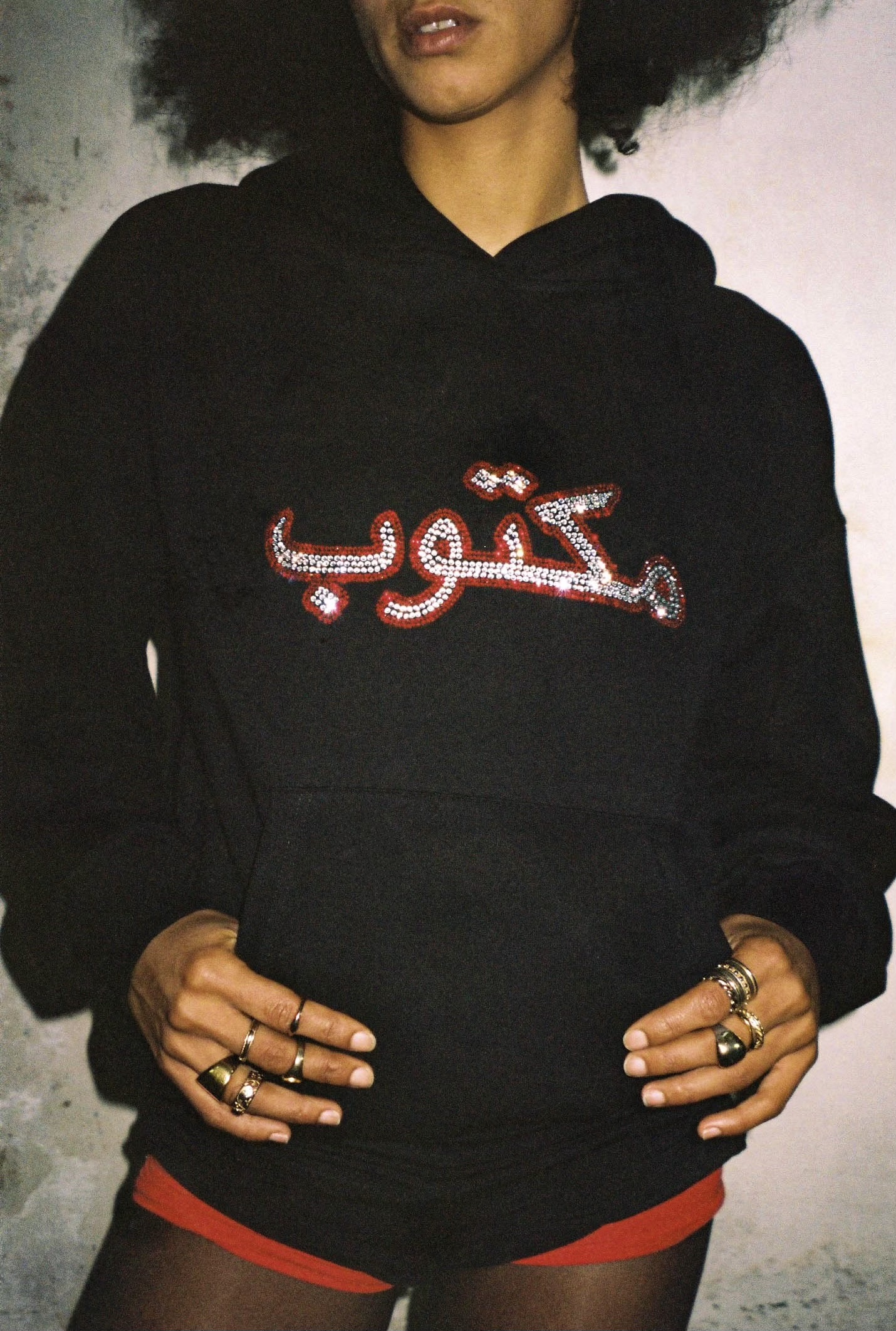 Black rhinestone hoodie 350gr.